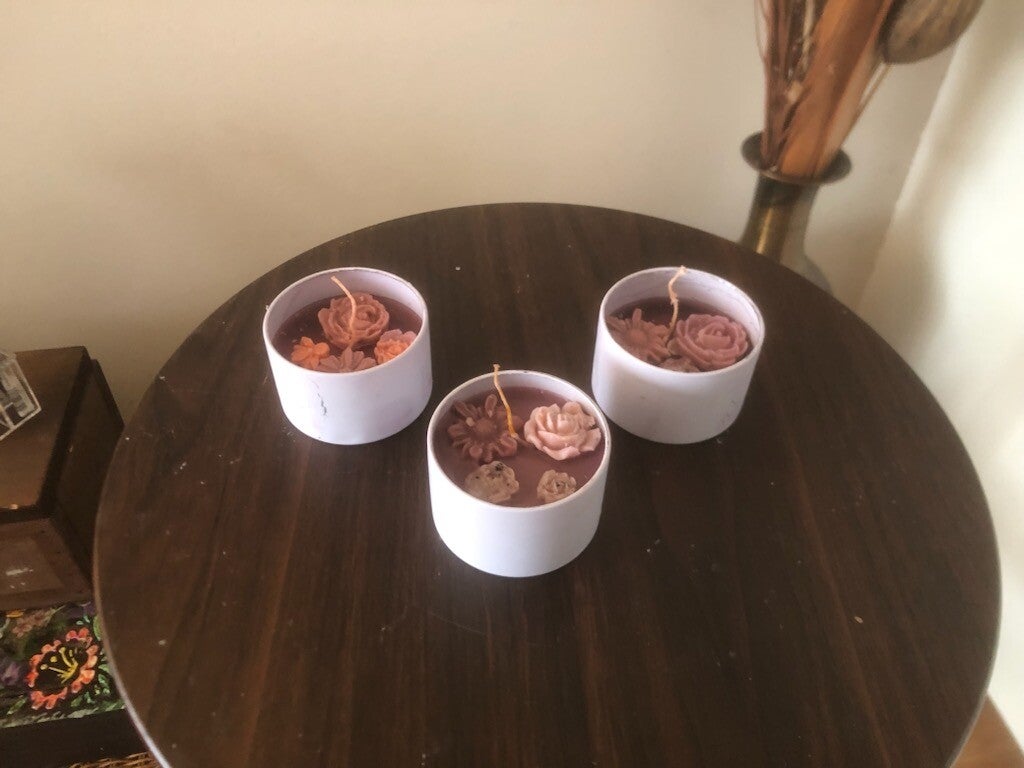 Beautiful candles in covered tins are adorned with roses abound. Makes a nice gift for any occasion. Brings sparkle and elegance to any table. Of Course these candles are handmade with quality ingredients. Enjoy the lovely scent of roses and enjoy. I would be happy to fulfill any custom order requests.
