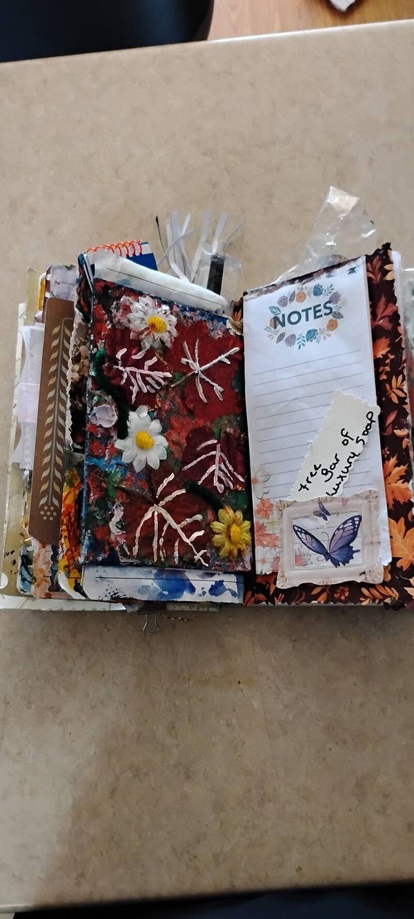 At the heart of this experience is a beautifully handmade, richly adorned notebook—a centerpiece designed to hold your thoughts, memories, and creative expressions. Surrounding it is an abundance of carefully selected artistic treasures, each one adding depth, inspiration, and a sense of discovery.