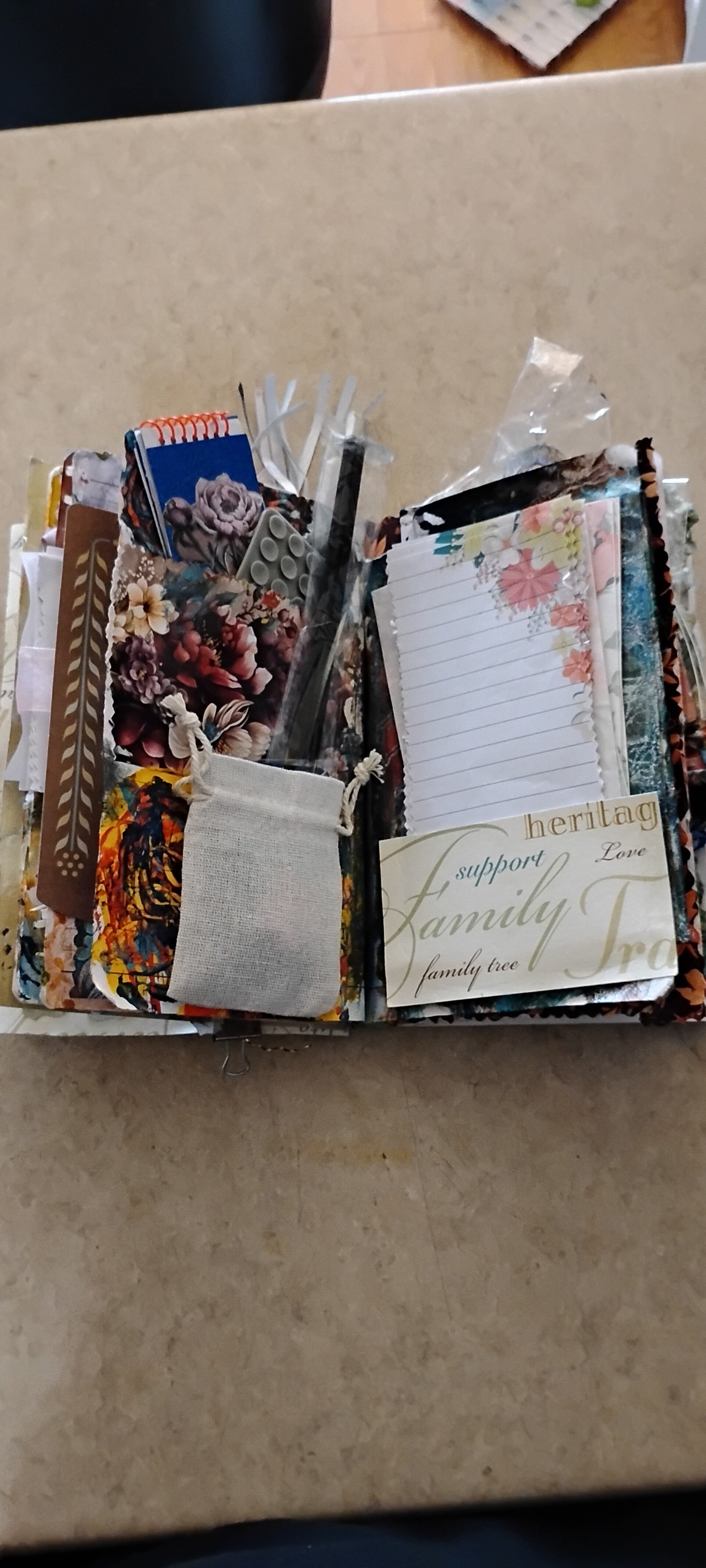 Every element inside has been thoughtfully chosen and hand-assembled, blending creativity with meaning. This journal invites you to slow down, reflect, and celebrate the connections, stories, and traditions that shape your life.